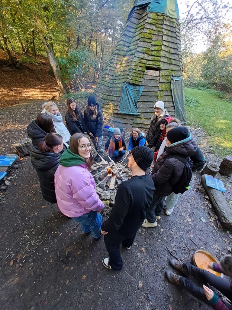 Den Dienstag verbrachten wir am Rolfschen Hof, um uns mit (unserer) Natur auseinander zu setzten. Wir lernten einiges über das tierische und menschliche Überwintern, kochten draußen über dem Lagerfeuer Kürbissuppe und machten Stockbrot. Passend zum Thema wurden wir durch eine Geschichte eingestimmt, für uns selbst Überwinterungsstrategien – auch im übertragenenen Sinn – zu entwickelt. Wir ließen den Tag dann mit einer Feedback-Runde im Seminarraum des Hofes ausklingen.