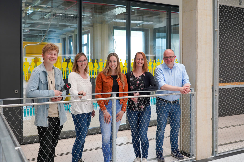 Maurice Flege von Radio Lippe mit FSJlerin Delia Riedel (in der Mitte) und den Organisatoren von der Lippe Bildung eG